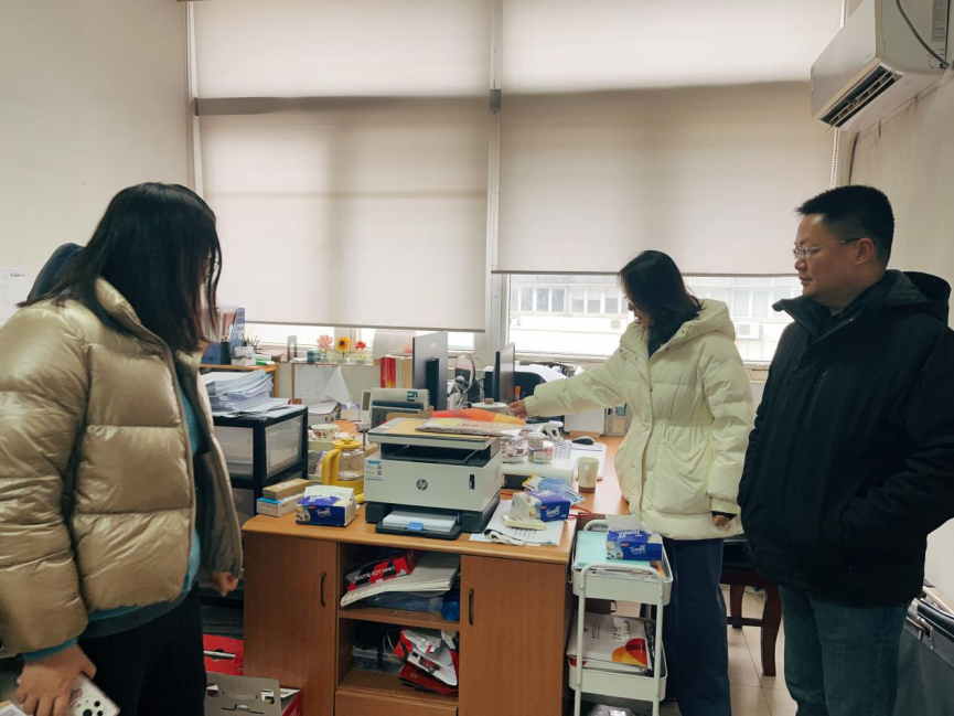 2月24日下午,学院党委书记李骏、副院长(主持工作)丁强、院党委副书记刘璐带领科级干部对久赢策略论坛实验室以及办公场所进行安全检查。