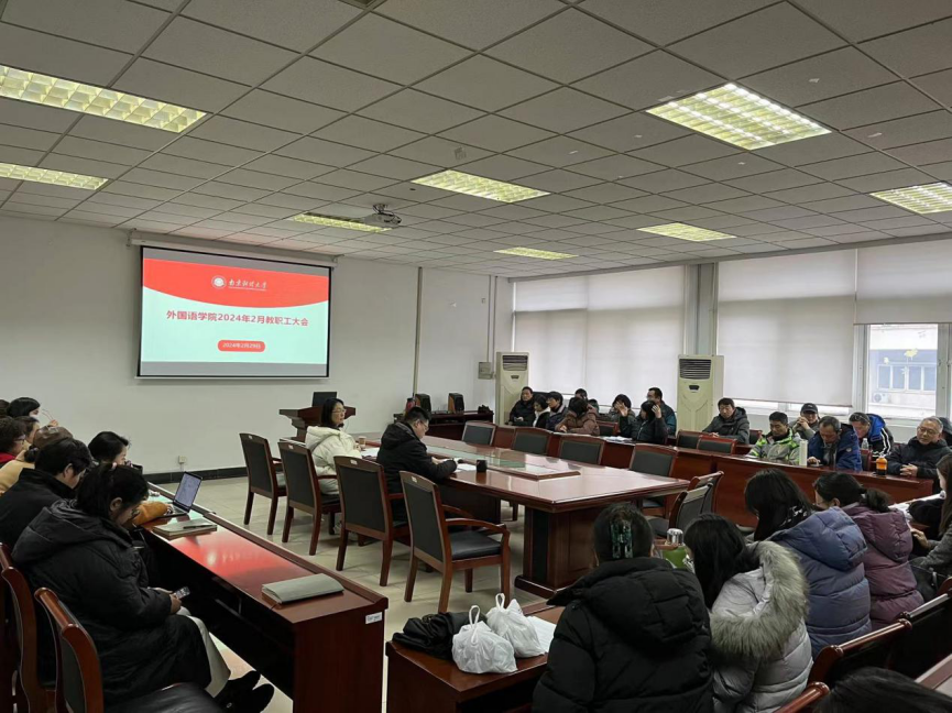 李骏书记传达了新学期学校工作会议精神,重点解读了学校新学期工作要求,并对近期学院安全工作进行了部署。李骏书记强调,新学期学院要重点围绕党的建设、师德师风建设、网络教育、社会培训等方面营造更加风清气正的氛围、更加团结协作的精神和更加创新有为的干劲,共同创造一个积极向上久赢策略论坛。丁强副院长(主持工作)汇报了学院当前人才引进与师资队伍建设、科学研究与学科建设、职称评审、专硕申报等方面的情况,肯定了全体教师在过去一年取得的成绩,希望在新的学期全体教职工能发挥特长与优势,同心戮力、提振信心,以昂扬的斗志、团结拼搏的精神,切实履行好外语人的职责,确保学院在新的一年里各项工作再上一个新台阶。