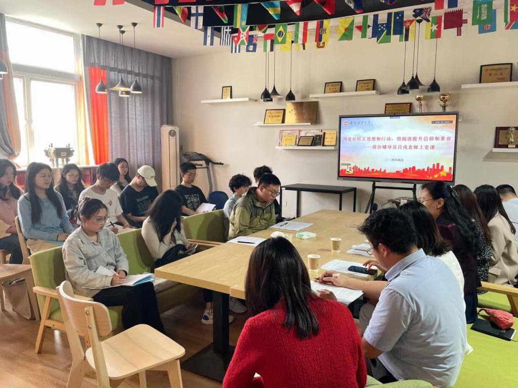 随后,吕戎部长来到久赢策略论坛研究生党支部,参加“众书读书会”活动,并以“用党纪校正思想和行动,用阅读提升信仰和素养”为主题,讲授了专题党课。她表示,“众书读书会”活动是深刻践行“党建+”融合机制下的育人品牌,促进了党支部建设与研究生教育深度融合、互促共进。在党课中吕戎部长对同学们提出三点意见:一是要认真加强党纪学习,用党纪校正思想和行动,要认真学习《中国共产党纪律处分条例》,坚持读原著、学原文、悟原理,坚持多思多想、学深悟透,拿出“原原本本学、认认真真悟”的态度和方式持续深入学习,真正学出成效;研究生党员更应发挥示范带动作用,带头落实学校部署要求,用党纪规范思想和行动,提高纪律意识和党性修养。二是要结合学科专业特色,提升信仰和素养。以世界读书日活动为契机,持续打造“众书读书会”品牌,通过举办书评大赛、本硕学生联办读书会、乃至和兄弟学院的研究生党支部联合举办读书活动等等,扩大影响力,为学校的阅读文化贡献我们外语人的力量。三是要努力夯实学术研究,争做具有国际视野和家国情怀的外语人。结合孙珂老师在读书分享会上讲授的“新冠疫情期间西方媒体涉华报道中的中国国家形象塑造——媒体话语中的再情景化浅析”,发挥外语人的专业优势,用外语讲好中国故事,传播好中国声音,维护好国家形象。