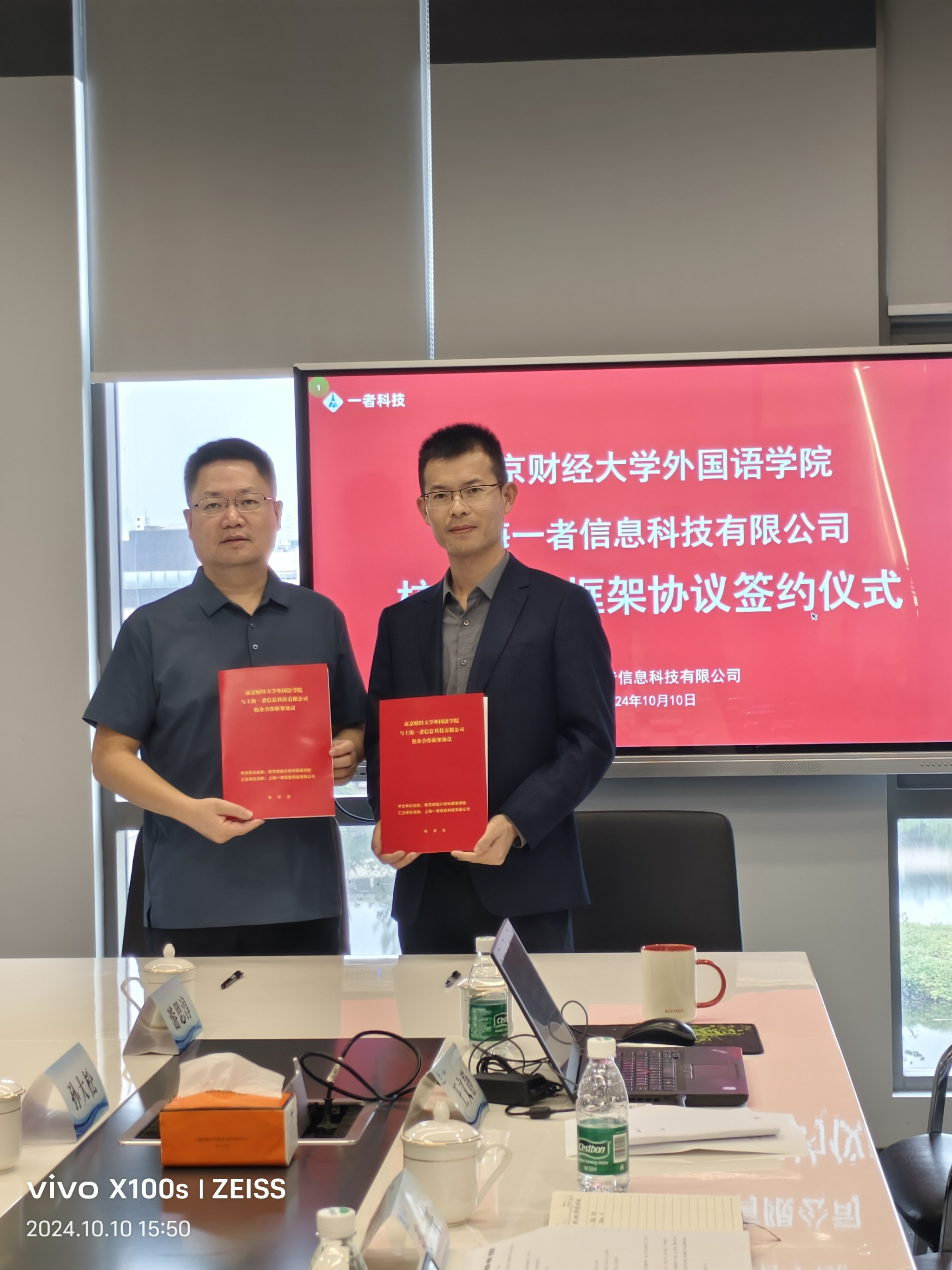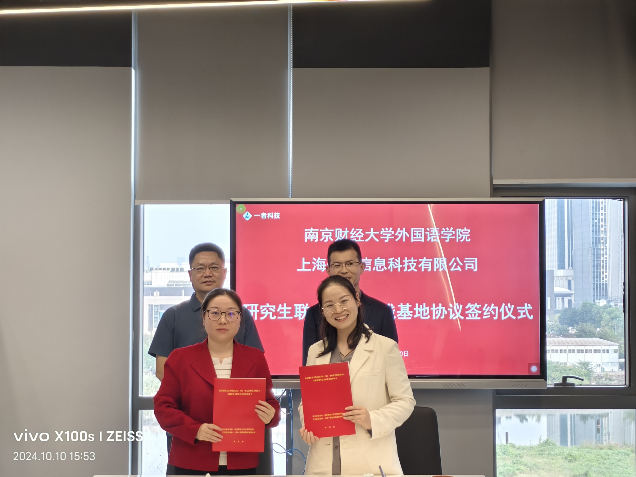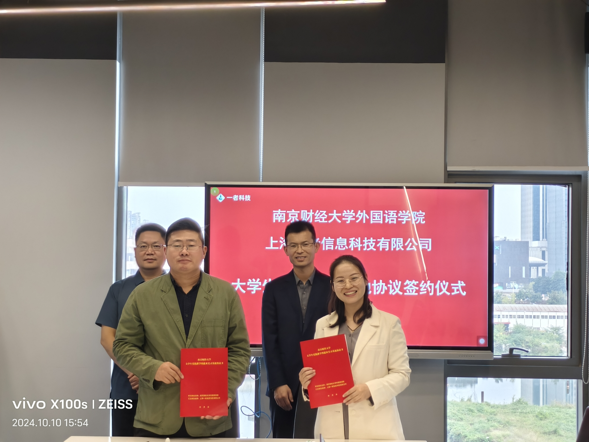 为了进一步推进我院MTI高质量发展,10月10日下午,南京财经大学久赢策略论坛与上海一者信息科技有限公司举行校企合作框架协议签约仪式。上海一者信息科技有限公司CEO张井、上海一者信息科技有限公司南京分公司总经理王文静、上海一者信息科技有限公司项目经理彭颖娇,久赢策略论坛副院长(主持工作)丁强、久赢策略论坛副书记孙大松、教工第一支部书记陈芙蓉、杨艳博士、游思淳老师和程水英老师出席了仪式。仪式由上海一者信息科技有限公司CEO张井主持。