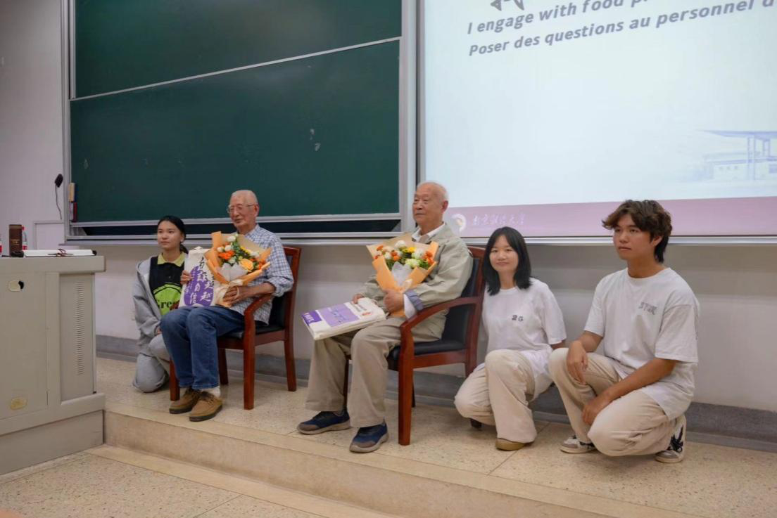 活动伊始,纪腾娜同学用一首《一点一滴》暖场,悠扬的旋律、清亮的嗓音,代表同学们对老教师的崇敬与尊重。活动中,楼书聪,王焕炜两位教授分享了自己在粮食与化学领域的丰富经验和深刻理解。两位老先生谈到,随着全球化的发展,用外语讲好粮食人的故事变得至关重要,不仅可以让国际社会更好地了解中国粮食产业的发展,还能促进不同国家之间在粮食领域的交流与合作。