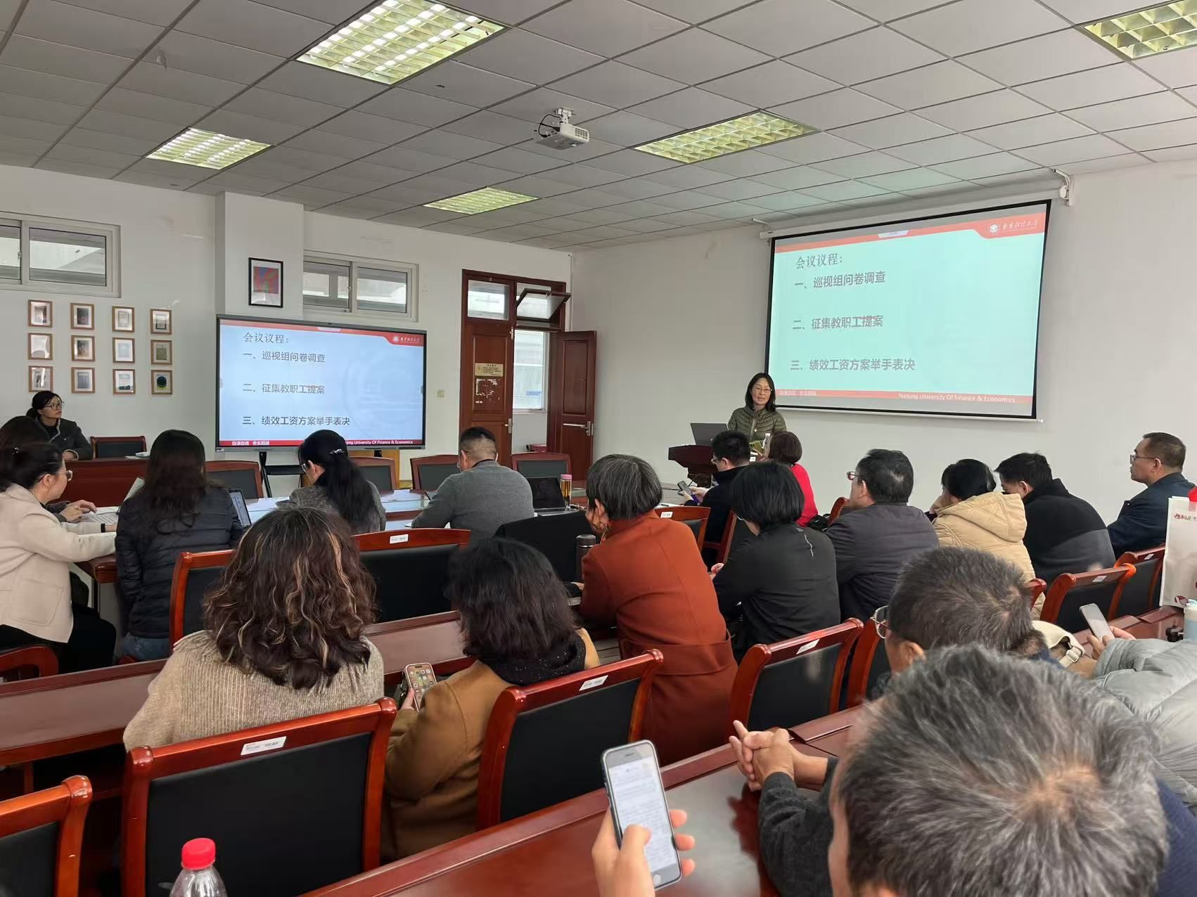 会议还通报了学校征集第五届教职工代表大会提案的通知,并通报了学院近期相关工作。