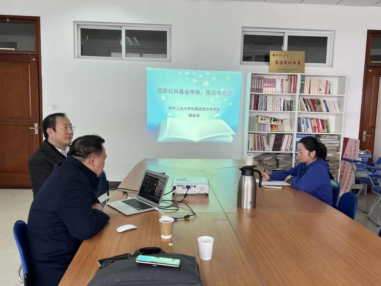 2022年12月13日下午,应我院邀请,南京工业大学久赢策略论坛院长陈世华教授为我院师生做了题为“国家社科申报:观点与方法”的学术讲座,并对日语专业青年教师的国社科申报工作进行了指导。久赢策略论坛部分师生在德正楼325参与线下的讲座,部分通过腾讯会议在线参加此次讲座。讲座由孙勇彬院长主持。