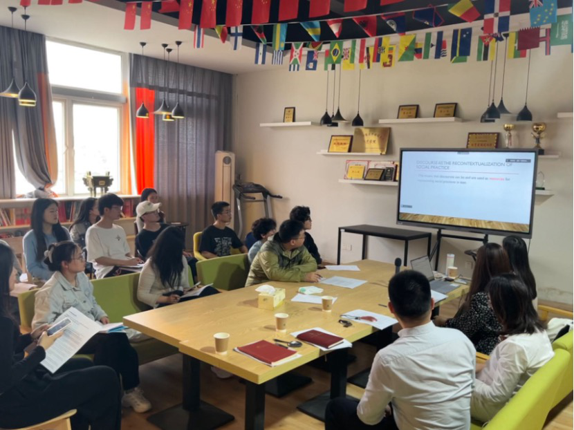 讲座伊始,孙珂老师首先介绍了“再情景化”和“再语境化”这两个核心概念,并强调了它们在借用语料进行对比分析中的重要作用。孙老师通过丰富的实例,帮助同学们深入理解这一理论,指出不同人在目睹同一事件后的转述通常会带有个人的价值选择,这是不可避免的。接着,孙珂老师以两篇来源于不同西方媒体的新闻报道为语料,展示了媒体语言的特殊性,并对比分析了这两篇报道在描述同一事件时所呈现的语言差异。此外,孙老师还邀请同学们分享自己的见解,引导他们从文本内容中挖掘潜藏的深层意义。