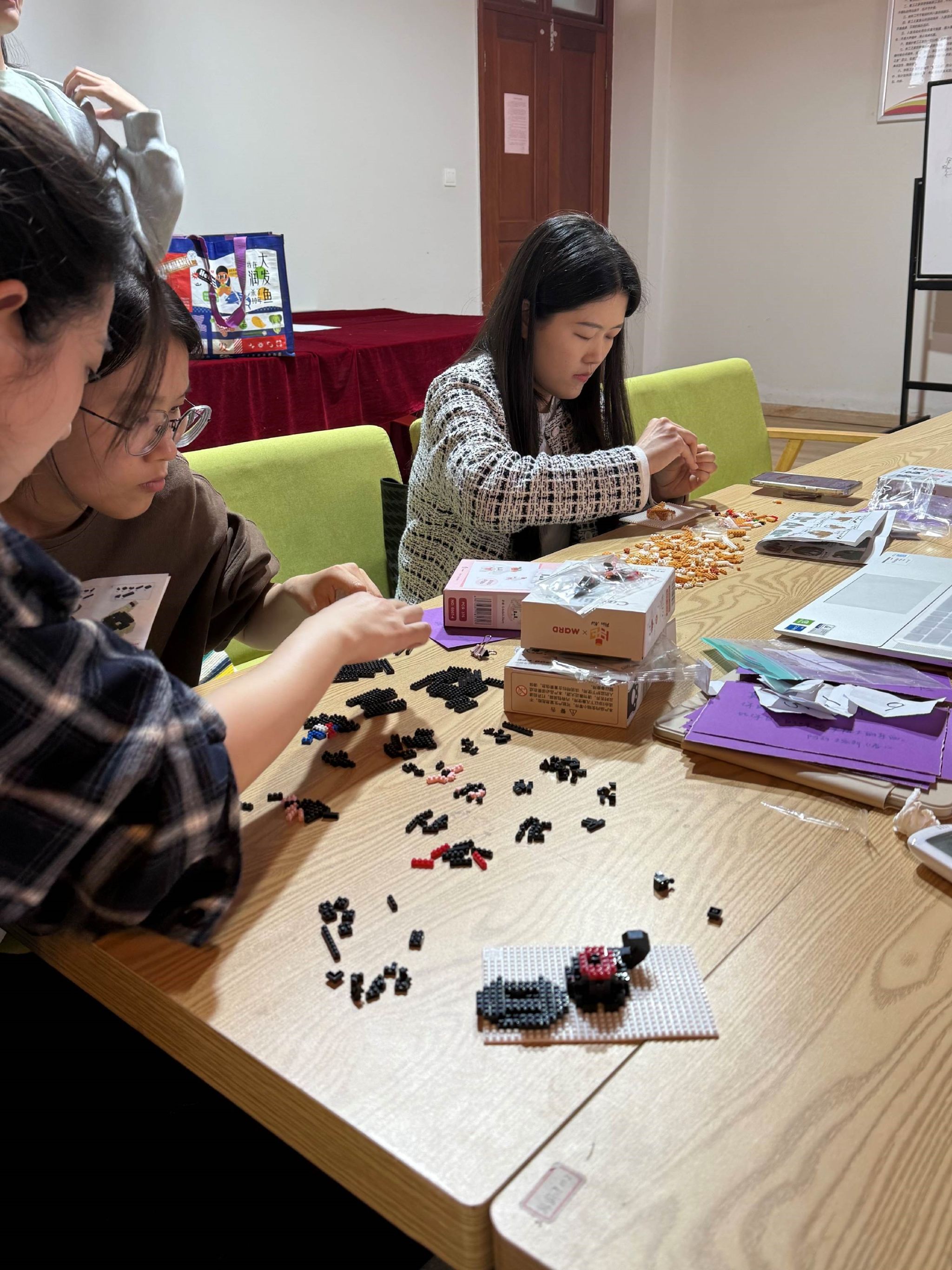 紧接着便是本次班会核心活动——“五育赋能心理成长”。活动紧扣德、智、体、美、劳的“五育”理念,设计了五个趣味挑战。在“德育挑战”中,同学们互赠“语言暖心卡”,用温暖的话语传递关怀;“智育挑战”则以情绪词汇接龙的形式展开,强化了语言对情绪的正向影响;“体育挑战”通过简单的肢体活动和冥想放松练习,帮助同学们舒缓身心;“美育挑战”则借由诗歌朗诵和音乐欣赏,让大家感受语言节奏带来的情感共鸣;最后的“劳动挑战”中,同学们动手拼搭积木,在创意手作中释放压力,收获成就感。五个挑战环环相扣,既体现了专业特色,也为心理健康教育注入了活力。